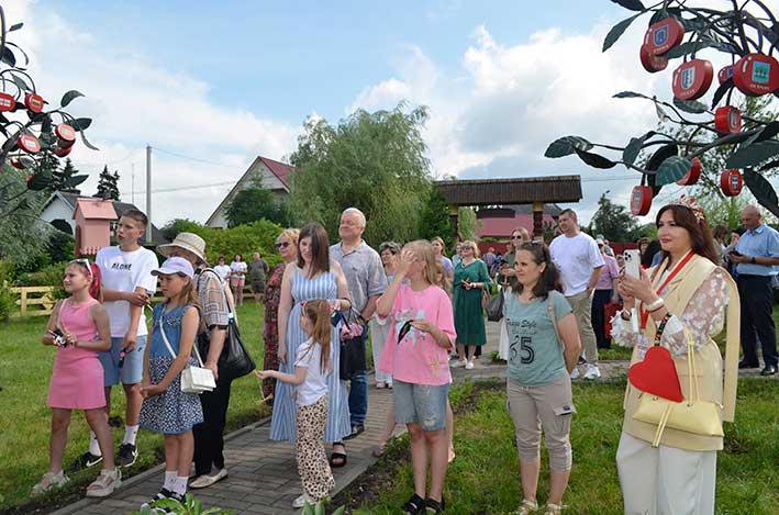 Аплодисментами присутствующие встречали Вишнёвую королеву, которая   приветствовала всех песней. Отвечая на вопросы корреспондента, рассказала про Болеслава Лапыря, агранома-селекционера, который разводил в Глубоком вишни, о  традиции собираться вместе возле  сказочных вишнёвых деревьев с друзьями и  загадывать желания,  предложила поучаствовать в тематической викторине,  а затем пригласила гостей в свою резиденцию посмотреть на вишнёвую выставку,  угоститься вкусным вишнёвым вареньем, которое она варила из свежих ягод и, конечно же, принимала подарки.