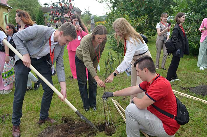 Побывали в резиденции и участники молодёжного форума.  Россиянин Алексей Пугачёв порадовал  глубочан профессиональным  сольным выступлением. А затем молодёжь  показала, что умеет не только развлекаться, но и работать. Участники форума посадили возле резиденции вишнёвые деревья. Через пар-тройку лет они уже порадуют вишнёвыми ягодами, собирать которые, возможно, приедут наши сегодняшние девушки и парни.