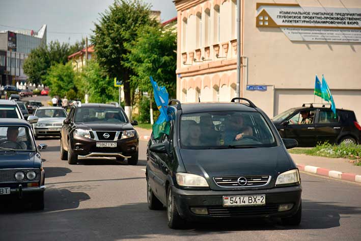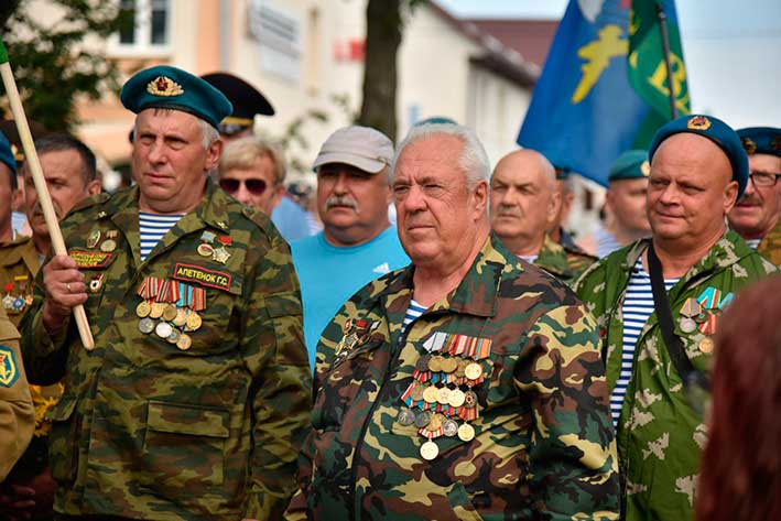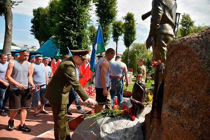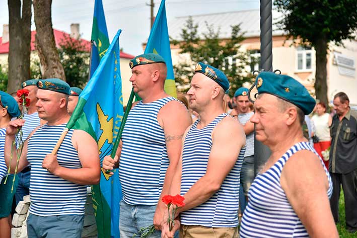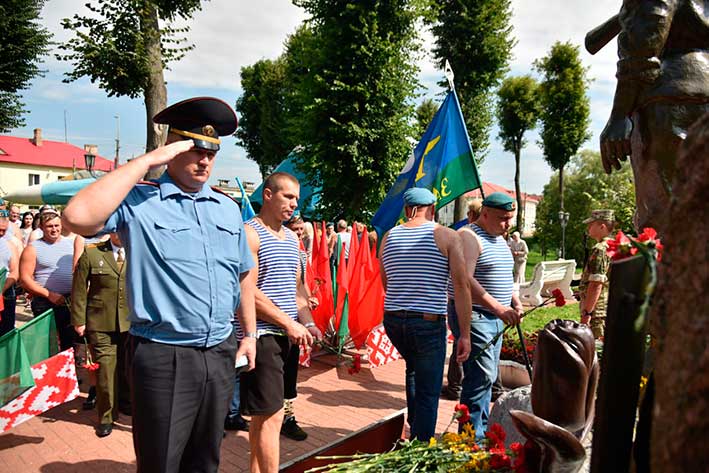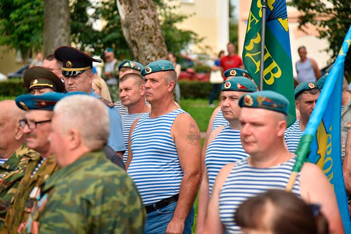 В акции приняли участие председатель Глубокского райисполкома Александр Шубский, его заместитель Татьяна Тарасевич, председатель районной организации ОО «Белорусский союз ветеранов войны в Афганистане», депутат Глубокского районного Совета депутатов Антон Жданович, представители трудовых коллективов предприятий, общественных организаций Глубокского района, и, конечно же, те, кто с честью служил в ВДВ – глубочане, отслужившие срочную службу, воины-афганцы. Все они, облаченные в традиционные голубые тельняшки и береты, с флагами ВДВ в руках, пришли поздравить офицеров, прапорщиков, сержантов и солдат, ветеранов-десантников с праздником мужества, силы духа и бесстрашия.
