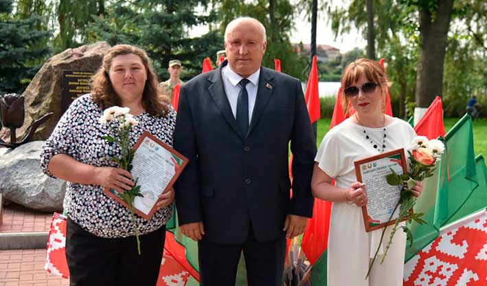 Ведущие мероприятия с гордостью объявили, что в 103-й отдельной гвардейской воздушно-десантной бригаде и 5-й отдельной бригаде специального назначения города Марьина Горка достойно несут службу парни из Глубокского района: Никишин Денис, Савицкий Артём, Керсанов Максим, Гридюшко Вадим, Бурень Дмитрий. По инициативе военного комиссариата Глубокского и Шарковщинского районов благодарственные письма были вручены родителям, воспитавшим настоящих патриотов своей родины: Светлане Савицкой, Татьяне Керсановой (остальные по объективным причинам не посетили мероприятие, но письма родителям будут вручены позже — прим.авт.).