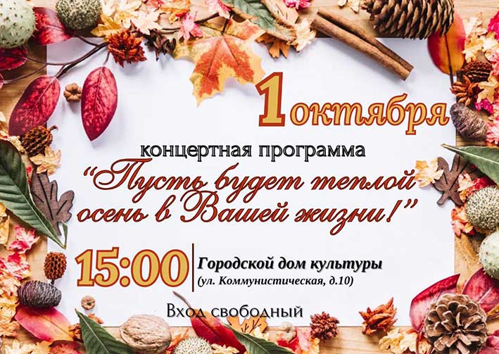 Глубокский городской дом культуры приглашает на душевную концертную программу «Пусть будет теплой осень в Вашей жизни», посвященную Дню пожилых людей!