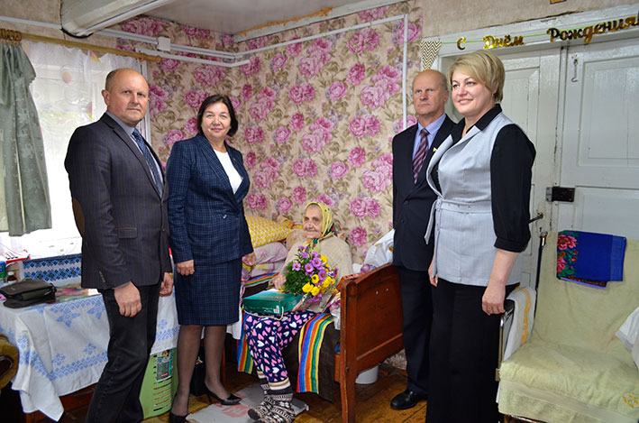 2 октября председатель Глубокского районного Совета депутатов Вера Телица, начальник управления по труду, занятости и социальной защите райисполкома Елена Боровик, директор территориального центра социального обслуживания населения Виктор Васюкович, председатель Зябковского сельисполкома Игорь Тимоновский поздравили долгожителей района.