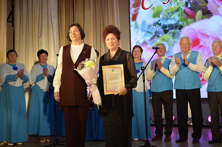Вера Михайловна поблагодарила монолитовцев за верность песне, за долговечную любовь к труду и за желание дарить землякам хорошее настроение. Она вручила коллективу Благодарность председателя Глубокского райисполкома за многолетнюю творческую деятельность, активное участие в общественной жизни района и в связи с юбилейной датой.