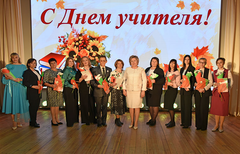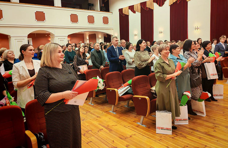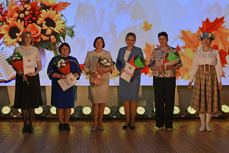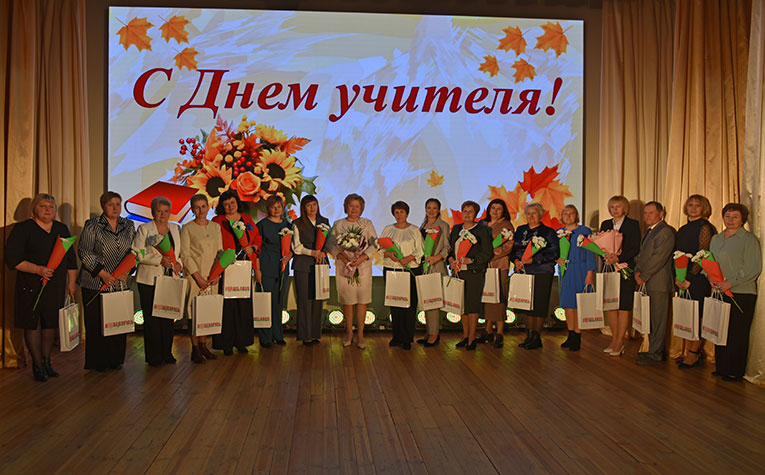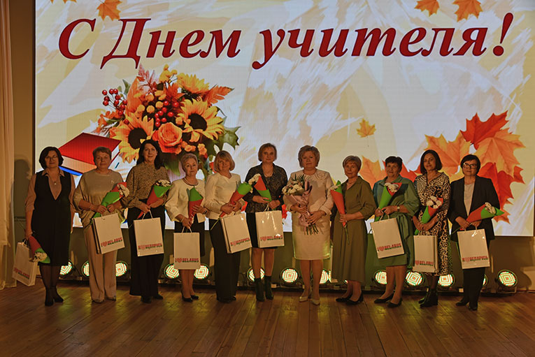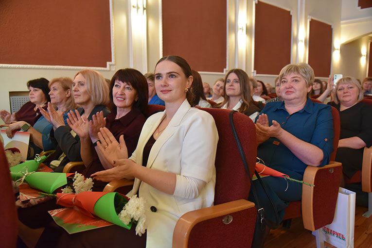 Особые аплодисменты сопровождали выход на сцену ветеранов педагогической деятельности: Валентины Филипёнок, Светланы Шимко, Марины Лукашевич, Елены Протас, Елены Янукович, Зои Узловской, Светланы Заленской, Анны Мацулевич, Светланы Пучинской, Инессы Гражевской и Елены Гайдар.
