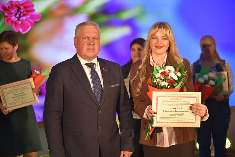 Не остался в стороне и профсоюз работников образования и науки. Председатель Глубокской районной организации Наталья Войтюль поблагодарила педагогов за их профессионализм и вручила Грамоты Витебского областного комитета и Глубокского районного комитета Белорусского профессионального союза работников образования и науки.