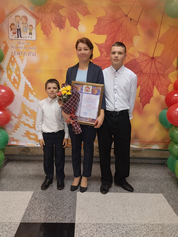 В числе лауреатов – жительница деревни Гвоздово Глубокского района, бухгалтер сельскохозяйственного предприятия «Озерцы», мама трёх сыновей Катерина Шипко. Двое из них, Саша и Ваня, присутствовали на праздничном мероприятии вместе с мамой.