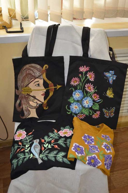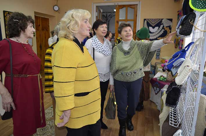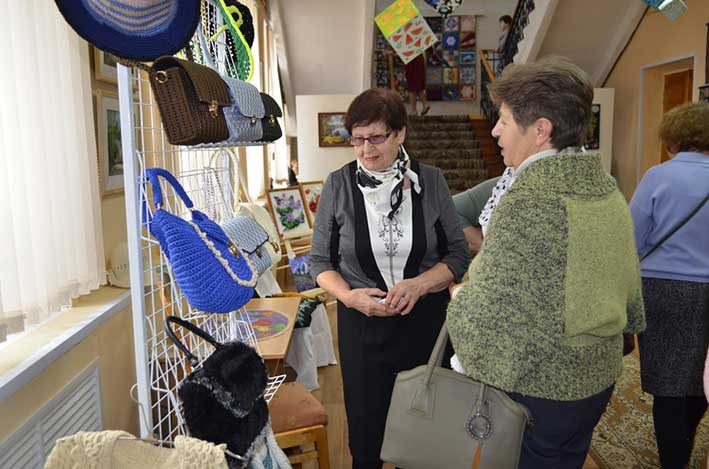 На выставке представлены маляванки по творчеству художника-земляка Язепа Дроздовича, которые посетительницы отделения учились рисовать под руководством мастера Светланы Сковырко, живописные работы, сделанные под руководством преподавателя-мастера Галины Машковой в кружке «Арт без преград», декоративные изделия – панно, дамские сумочки, кружевные изделия, которые делают умелые руки женщин из кружка «Дамский каприз» под руководством Елены Смулько.